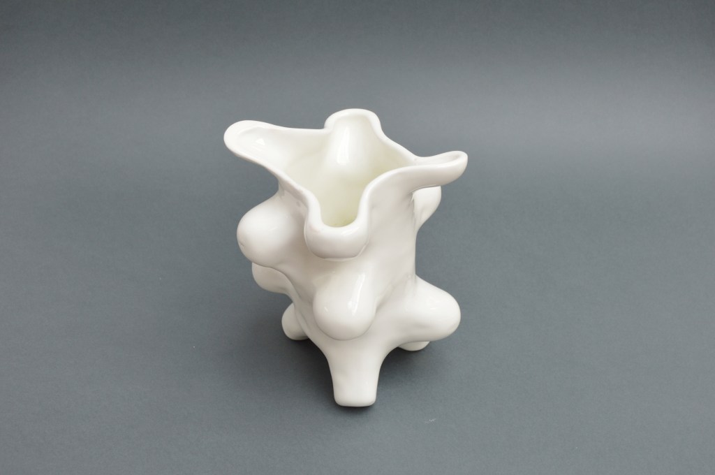 This organic shaped ceramic vase was created to give a sense of appreciation for the inhabitants of the microscopic world: bacteria, fungi, amoeba. It has been cast by hand in our ceramic workshop, therefore each piece is unique. This one of a kind piece is meant to give you a sense of appreciation for daily rituals and spice up the decor of your house. It can be used to hold cut flowers, as a plant pot or jewelry container. Its organic shape has many hidden nooks and crannies and it is changing depending on the angle of the display. You can explore its surface for a long time.