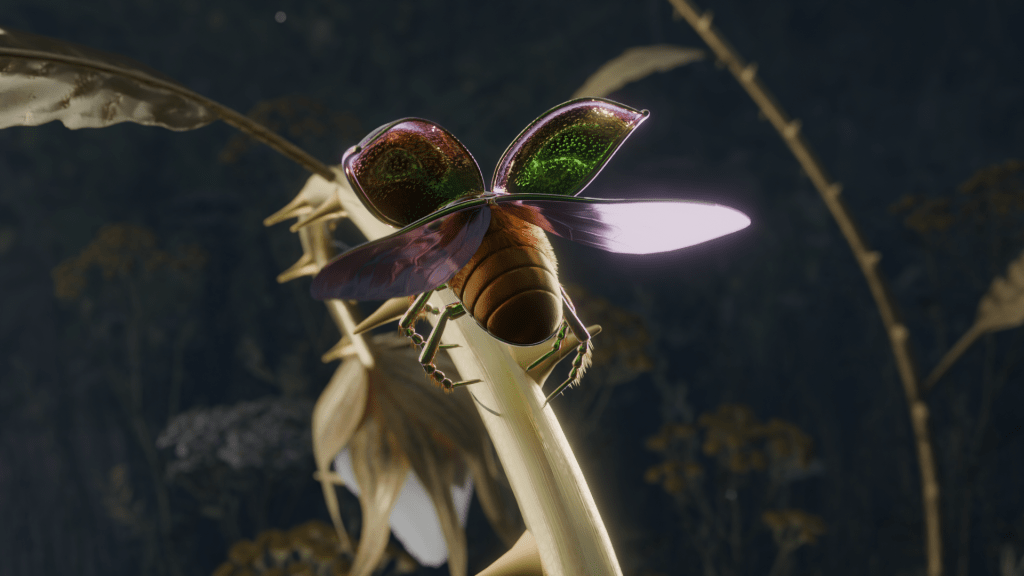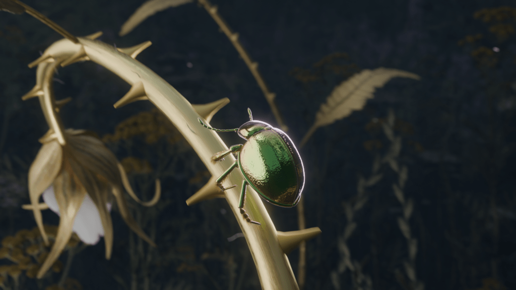 This series of short animations highlights the intricate world of small creatures like the tansy beetle and the orchid bee. Through detailed digital renderings, the animations explore these insects’ environments on a macroscale, bringing their tiny, often overlooked, world to life. The visuals emphasize the textures, colors, and movements of these critters, set against a backdrop of natural settings that enhance their delicate interactions with their surroundings.